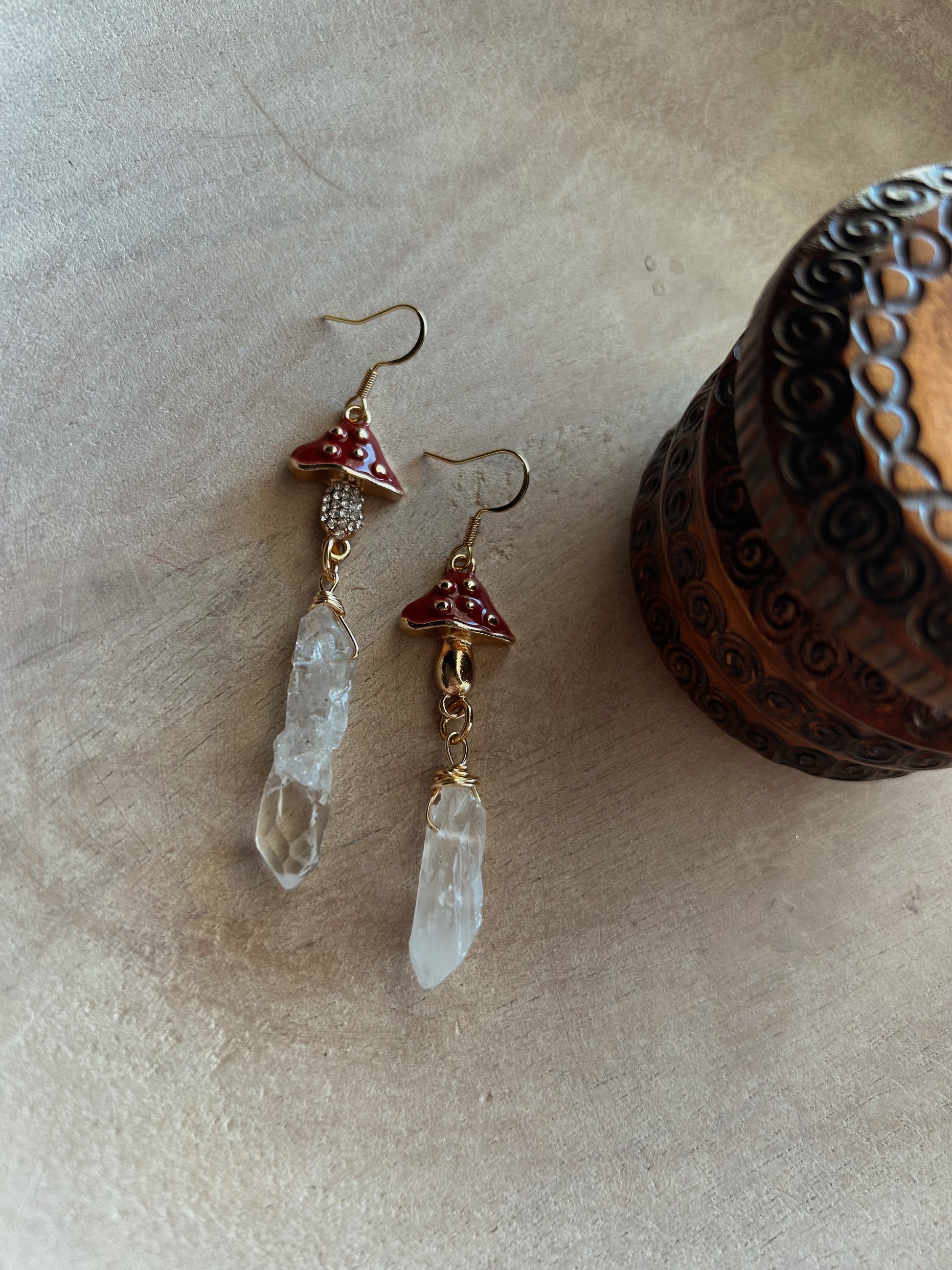Clear quartz mushroom earrings