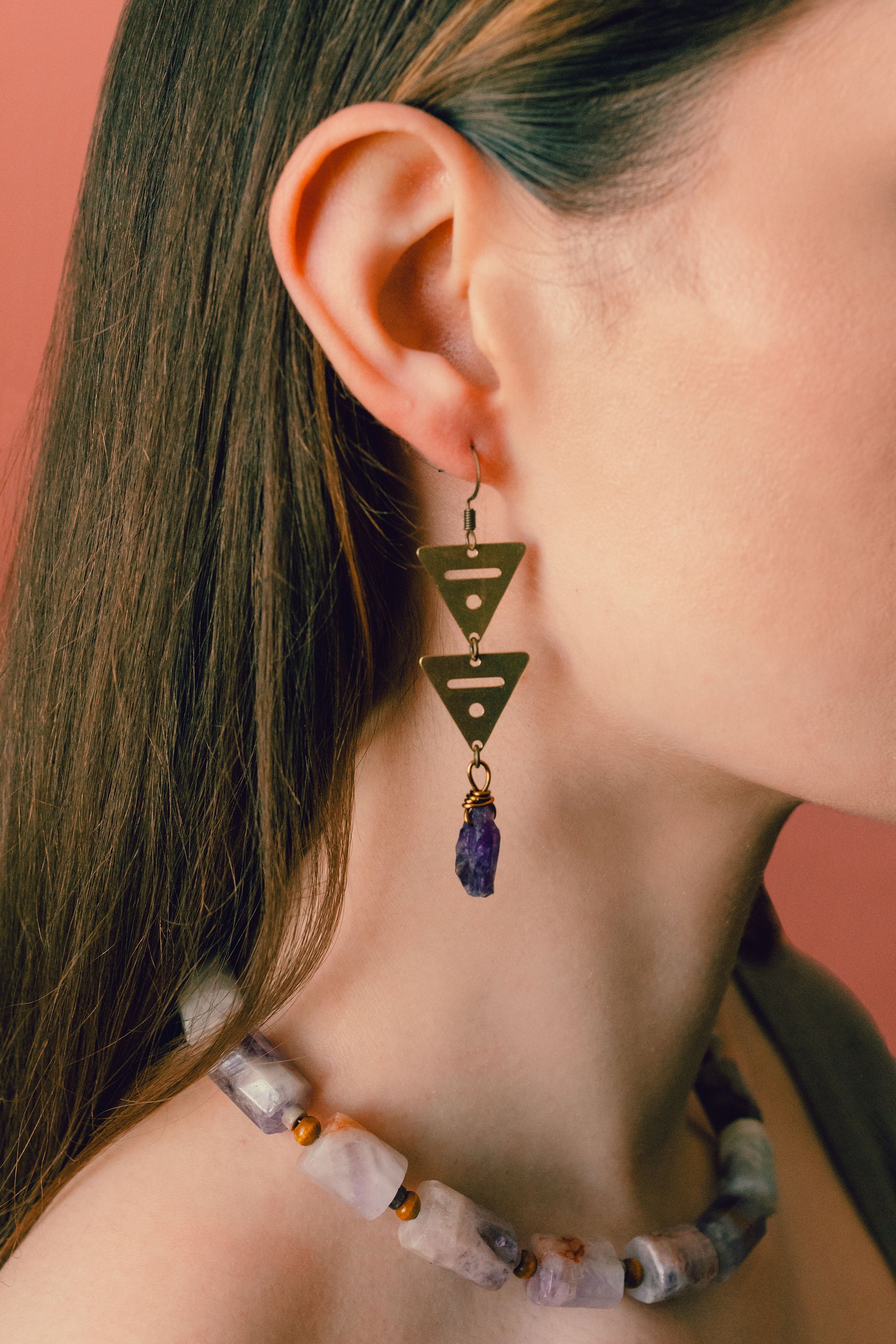 Amethyst brass layered earrings